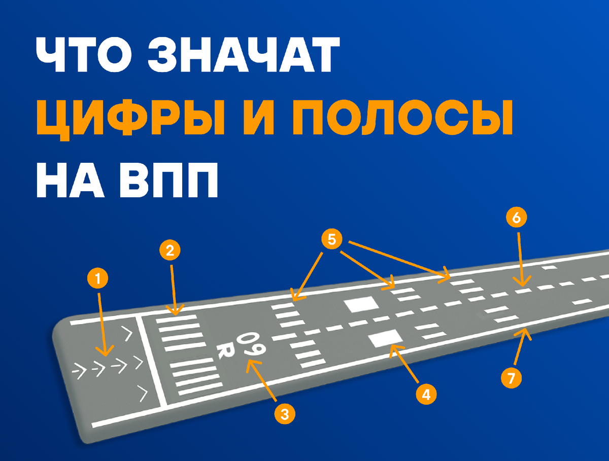 Каждая линия на ВПП — это не просто рисунок. Это система координат для пилотов, нарисованная прямо под шасси. 1⃣ Смещённый порог (Displaced Threshold) Иногда начало ВПП сдвигают вперед из-за препятствий или плохого состояния покрытия. Белые стрелки перед «зеброй» показывают, что до линии порога можно рулить и выполнять разбег, но садиться нельзя. 2⃣ Порог ВПП (Threshold) Белая разметка в виде пешеходной «зебры» показывают начало посадочной зоны и одновременно ширину ВПП. Например: 4 полосы — 18 м, 6 — 23 м, 8 — 30 м. 3⃣ Номер ВПП (Landing Designator) Цифры — это направление ВПП, привязанное к магнитному курсу, округлённому до десятков. Например: курс 270° → 27, а противоположное направление (±180°) → 09. Если несколько параллельных полос, добавляют буквы: L / R / C — Left, Right, Center. 4⃣ Прицельные метки (Aiming Point) Две большие прямоугольные площадки примерно в 300 метрах от порога. Это ориентир, куда пилот должен “целиться” при касании. 5⃣ Зона приземления (Touchdown Zone M