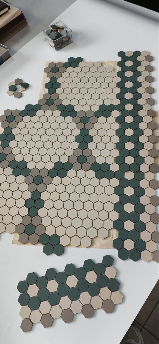 Мозаика из метлахской плитки Winckelmans. ✨Изящный узор коврика и бордюра выполнен на сетке в нашей мозаичной мастерской. Состоит раскладка из шестигранников размером 2,5см и толщиной 5мм, с прокрасом на всю толщину. 🎨Богатая цветовая палитра мозаики Winckelmans состоит из 32 оттенков. Вы можете выбрать свою цветовую гамму, собрать свой узор, а наши мастера перенесут ваше творчество на сетку, чтобы облегчить укладку материала👌🏻 Есть вопросы? Звоните 89060580358 или пишите нам на WhatsApp 🫶🏻