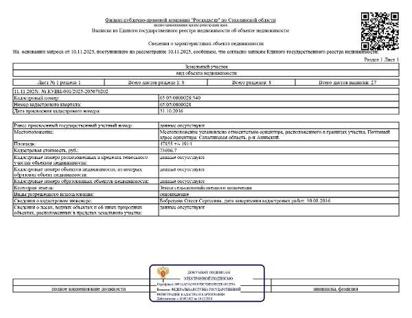 Название: Земельный участок, площадью 47855 кв.м., к/н 65:05:0000028:540