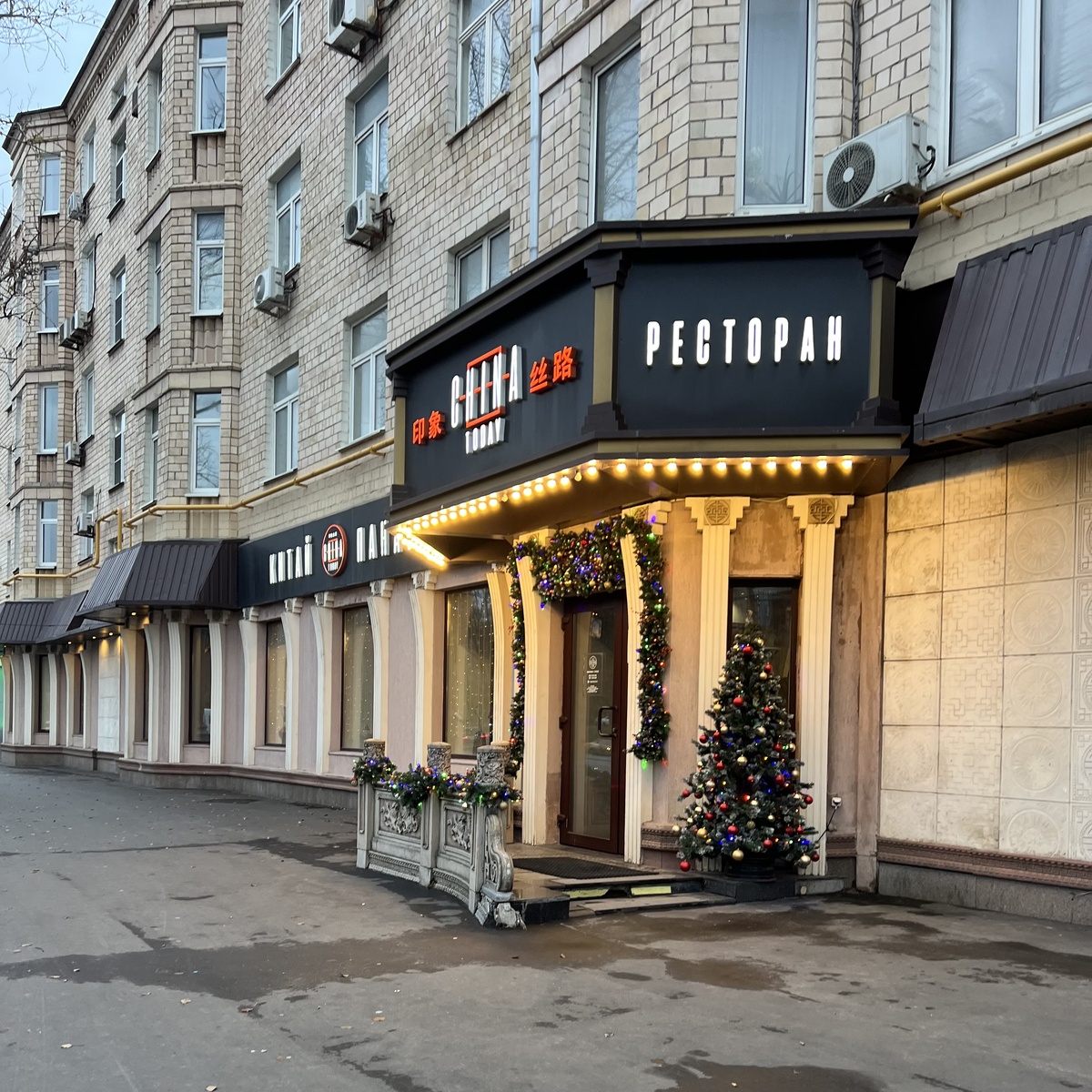 Кирпичная «старостройка» в Кунцево по адресу Кутузовский проспект, 71 уже давно и почти без перерывов служит пристанищем китайской кухне. Первым еще в 90-х там обосновался ресторан «Вэйфан», затем в 2005-м его сменил China Dream Цзян Цзе, который просуществовал достаточно долго, до 2018 года, и даже стал участником программы «Ревизорро» на канале «Пятница». Далее в то же помещение заехал «Шелковый путь», а затем в 2021 году появился China Today, заведение паназиатской и китайской кухонь. Вход в центре здания, со стороны Кутузовского, между аптекой и магазином «Сударь»: там длинная черно-белая вывеска с красными иероглифами, полуколонны, большие окна и дверь-стекляшка. Кстати, рядом есть парковка, но заезд на нее через дворы.