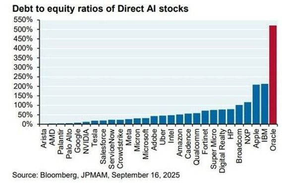 📊 Трещина Уолл-стрит. Акции Oracle упали за месяц на 30% — у компании не хватает денег, чтобы платить по долгам Совсем недавно мы удивлялись резкому росту котировок Oracle после заключения сделки с OpenAI на $300 млрд. Однако для строительства центров обработки данных необходимы огромные заёмные средства, которые Oracle покрывает с трудом. Долг компании превышает её активы на 500%. Barclays на этом фоне понизил кредитный рейтинг компании до «продавать», призвал избавиться от облигаций компании и купить пятилетние дефолтные свопы. #ЭкономикаМИР @if_news