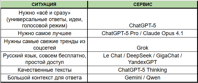 Здесь — подборка моделей, которые реально помогают в работе и учёбе, с понятными объяснениями и примерами, когда каждая из них подходит лучше других. Сейчас доступно огромное количество инструментов на основе API GPT — каждый решает свою узкую задачу: тексты, идеи, анализ, сценарии, копирайтинг, обучение. Чтобы вы не тратили время на тесты и сравнения, я отобрала наиболее удобные и эффективные варианты. 👉Тем, кто хочет глубже разобраться в нейросетях, я подготовила отдельный материал — полный список моделей с кратким и понятным сравнением. Он открывается за небольшой донат, примерно равный стоимости стаканчика кофе, но экономит вам часы времени. Если вы только начинаете изучать нейросети, начните с ChatGPT-5.