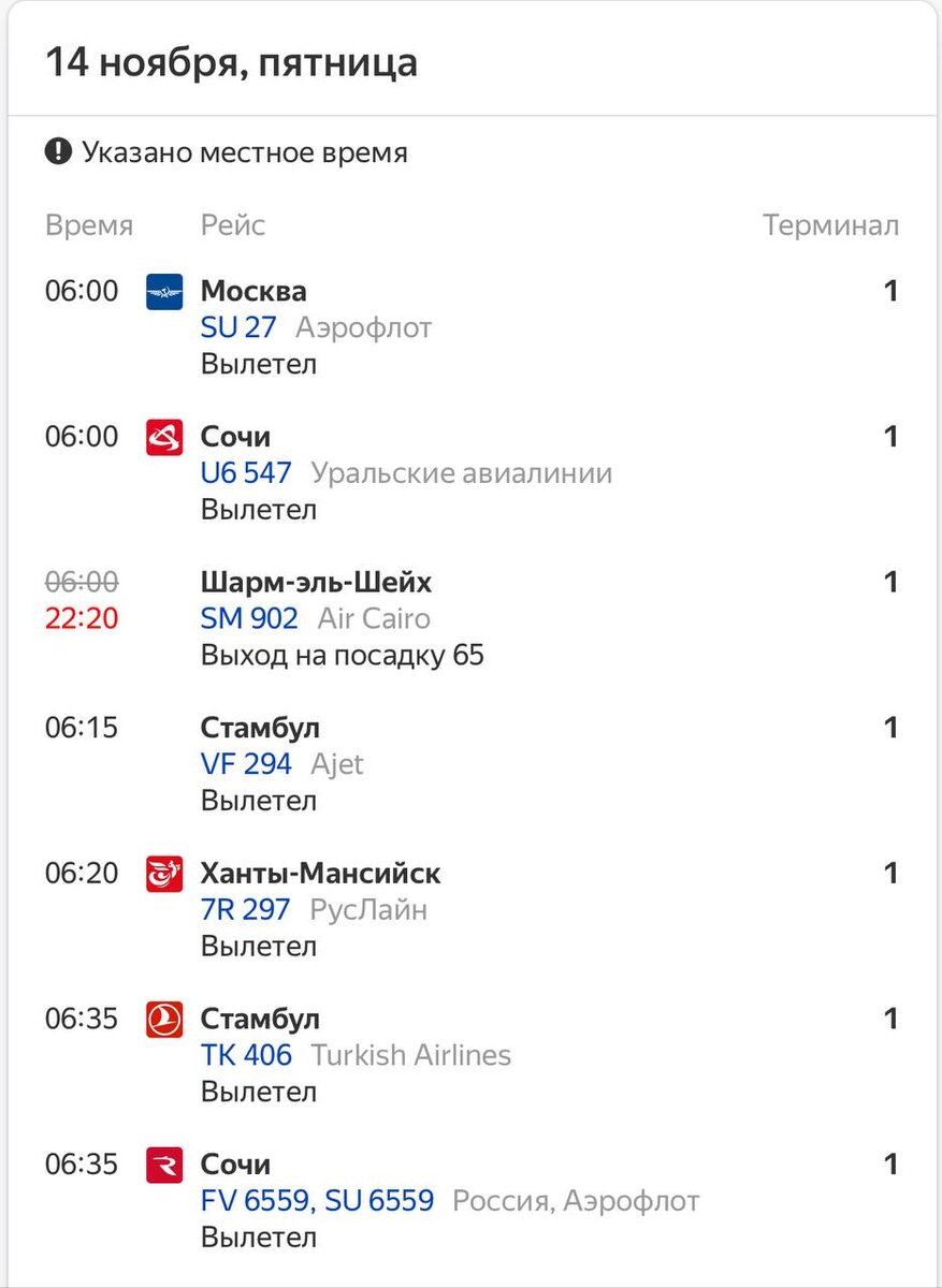 Хочу еще раз поднять больную тему о переносах и задержках рейса и сейчас речь не плане «ковер»,а о технических моментах,которые тоже случаются! Прошедшей ночь,мои любимые туристы отзвонились,что едут в аэропорт,я пожелала доброго пути,зная,что в 6 утра боинг встанет на крыло и мои путешественницы полетят в долгожданное путешествие,но рейс отменили ! Цитата от туроператора: Информируем вас о том, что рейс 14.11.2025 SM 902 LED (Санкт-Петербург) - SSH (Шарм-эль-Шейх), с запланированным временем вылета в 06:00, задержан до 22:20 в связи с поздним освобождением от технического обслуживания связанного борта SM 901. Что из этого вытекает: 📎Потеря дня отдыха 📎Взвинченные нервы 📎Отмена индивидуального трансфера 📎Ожидание следующего рейса А сейчас о главном! Ваша задача не паниковать,а позвонить своему турагенту,который направит вас на нужные действия. А задача турагента,быстро отреагировать и решить проблему с заботой о туристе.И потребовать компенсацию за потерянный день. Но я очень прош