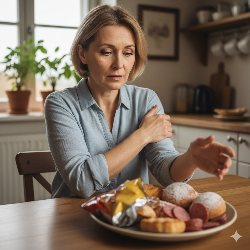 Замечаешь, что суставы хрустят чаще обычного? Возможно, причина — на твоей тарелке. Мы часто думаем, что проблемы с суставами — это от возраста или нагрузок. Но есть один фактор, который разрушает хрящи каждый день, и мы редко на него обращаем внимание. Это питание. Что именно ест твои суставы изнутри: 🍩 Сладкое и белая мука