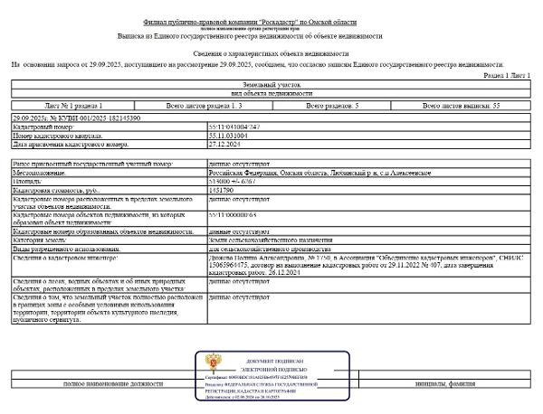 Название: Земельный участок из земель сельскохозяйственного назначения сроком на 5 лет, расположенный по адресу: Омская область, Любинский