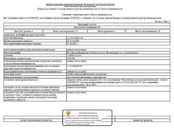 Название: Земельный участок из земель сельскохозяйственного назначения сроком на 5 лет, расположенный по адресу: Омская область, Любинский