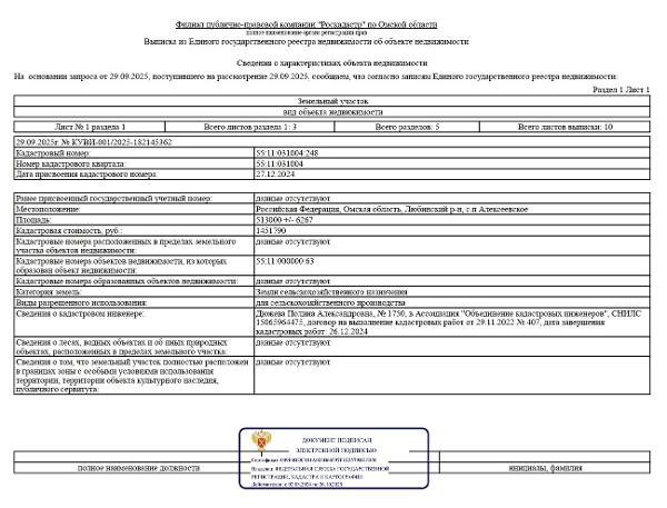 Название: Земельный участок из земель сельскохозяйственного назначения сроком на 5 лет, расположенный по адресу: Омская область, Любинский