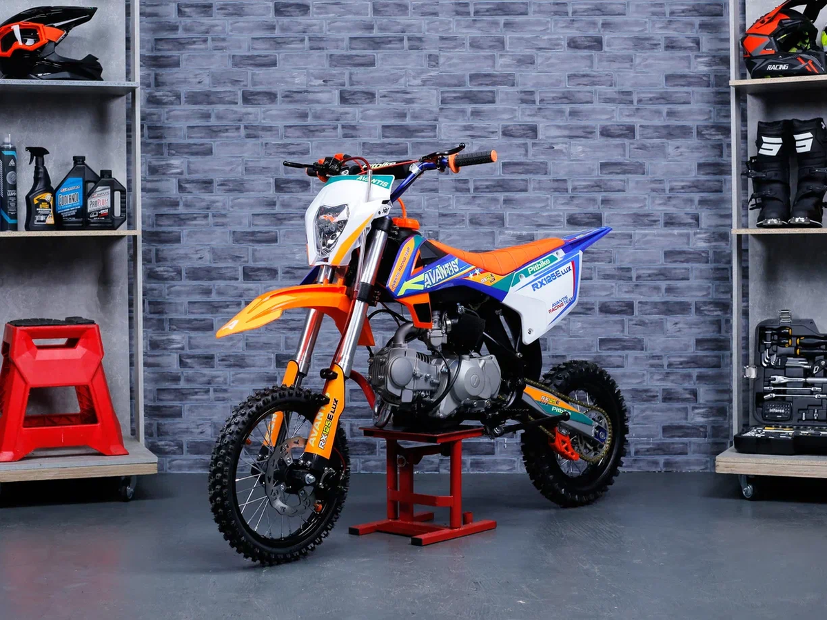 Топ-версия с 125-кубовым мотором для тех, кто ценит качество сборки и продуманную комплектацию. Avantis RX 125E Premium 17/14 получил алюминиевый руль переменного сечения, складные рычаги и регулируемую подвеску. Это не просто питбайк для новичков, а полноценный тренировочный инструмент.