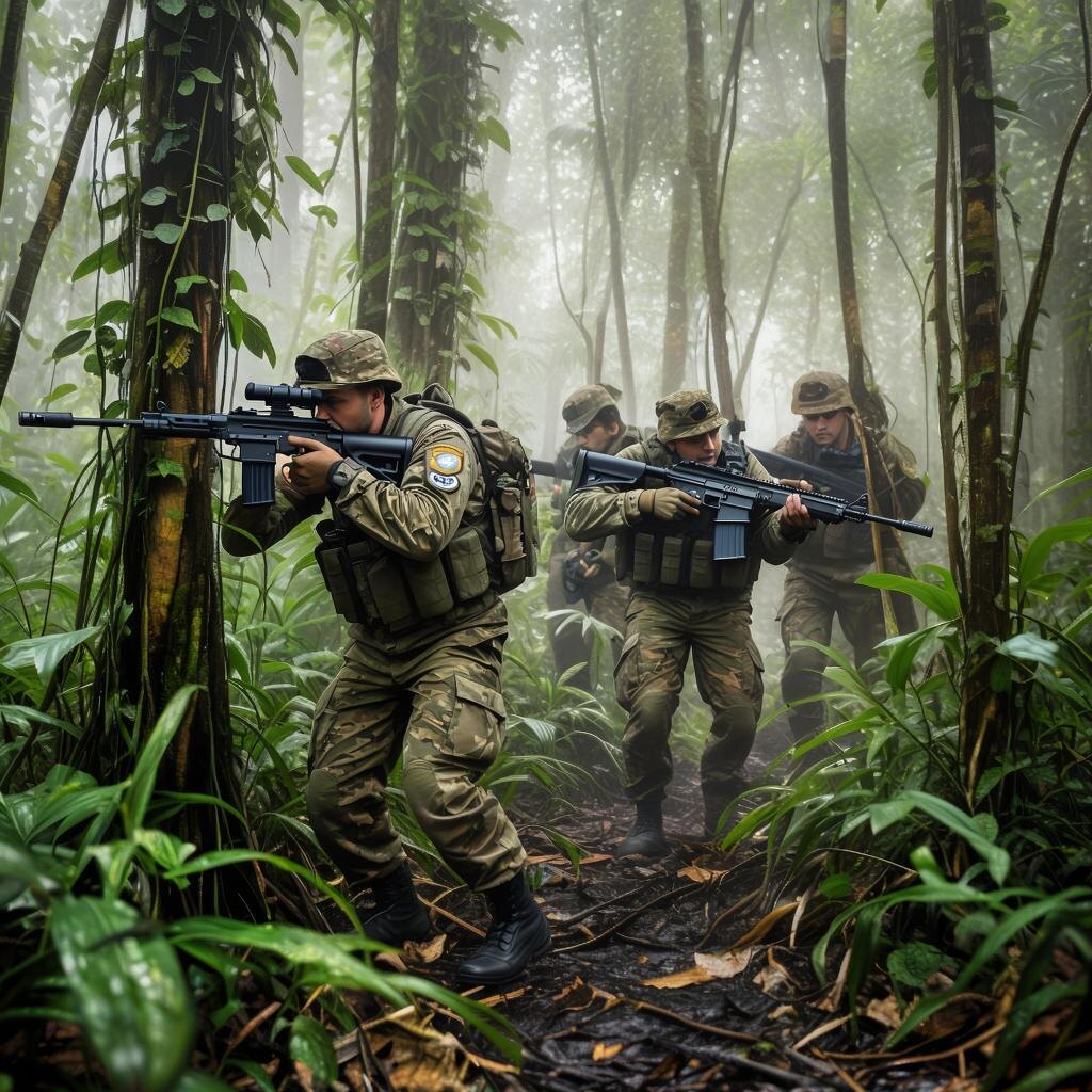 Это было обычное задание — очередная секретная операция на территории противника. Группа спецназовцев, одетых в камуфляж, осторожно продвигалась сквозь густые джунгли, стараясь не шуметь. Их цель была ясна: уничтожить базу террористов, расположенную глубоко в тропическом лесу.