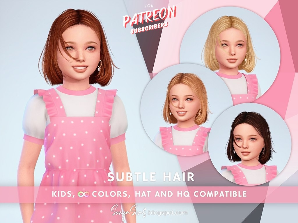 Скачать пользовательский мод 🌸Прическа для девочек - Subtle Hair Kids для The Sims 4 - #Детскиепрически@simsfans_ru