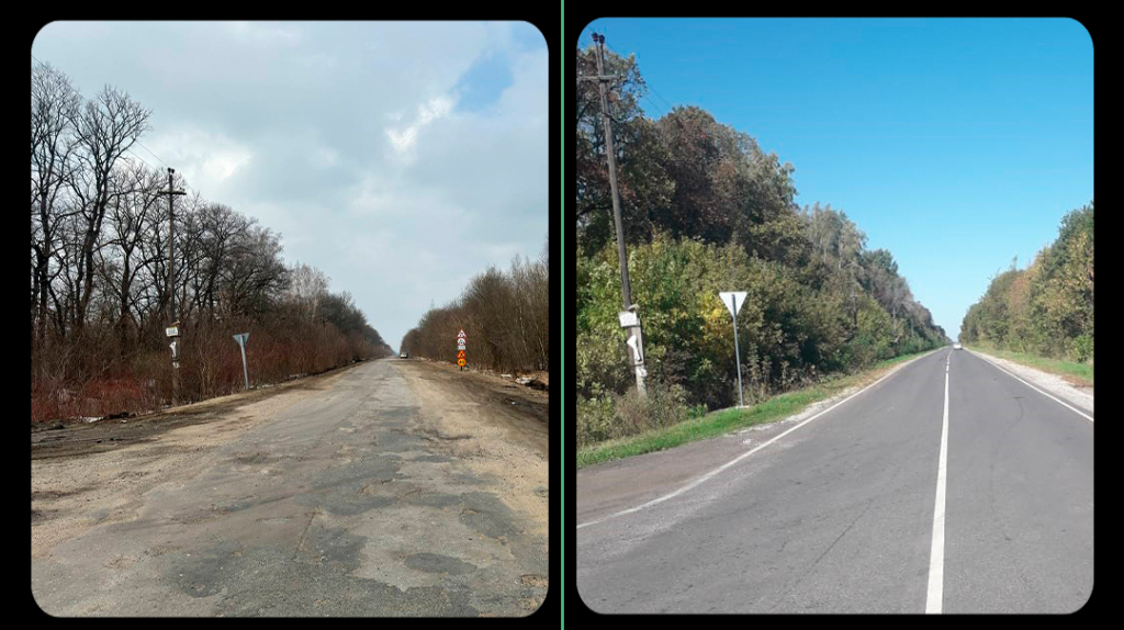 Брянцам показали фото дороги Комаричи-Лубошево до и после ремонта