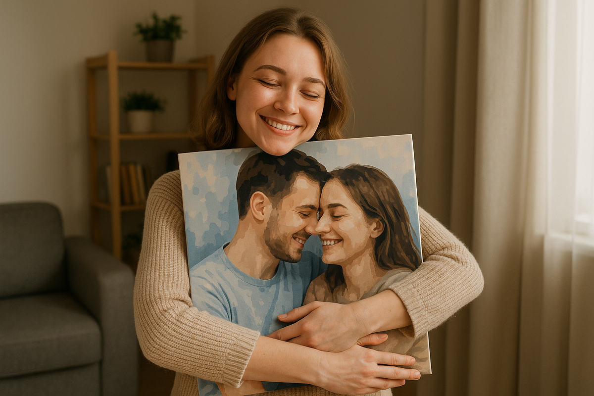 Некоторые подарки забываются на следующий день. А некоторые живут дольше цветов, дольше фото в телефоне, дольше многих слов. Она хранит его уже десять лет. И я до сих пор помню, как всё началось. ☕ Это была не любовь с первого взгляда Мы познакомились в октябре. Дождливый, прохладный город и разговор за соседними столиками в маленьком кафе. Она читала. Я разлил кофе. Классика. Мы долго притирались. Она — осторожная, сдержанная, с глазами, в которых то шторм, то полное затишье. Я — влюблённый, пытающийся угадать, чем её удивить. 🎁 Первый её день рождения, когда мы были вместе Это было на третий месяц. Я не знал, что дарить. Цветы? Она их не любит. Украшения? Скажет: слишком рано. Платье? Нет, я точно не угадаю размер. Я листал идеи в интернете и наткнулся на фразу: «Подарите ей не вещь — подарите воспоминание». Это зацепило. Я стал копаться в фотографиях. Нашёл ту самую: она стоит у окна, солнце скользит по лицу, волосы немного растрёпаны, в руках чашка. Я не знал, что делаю. Просто
