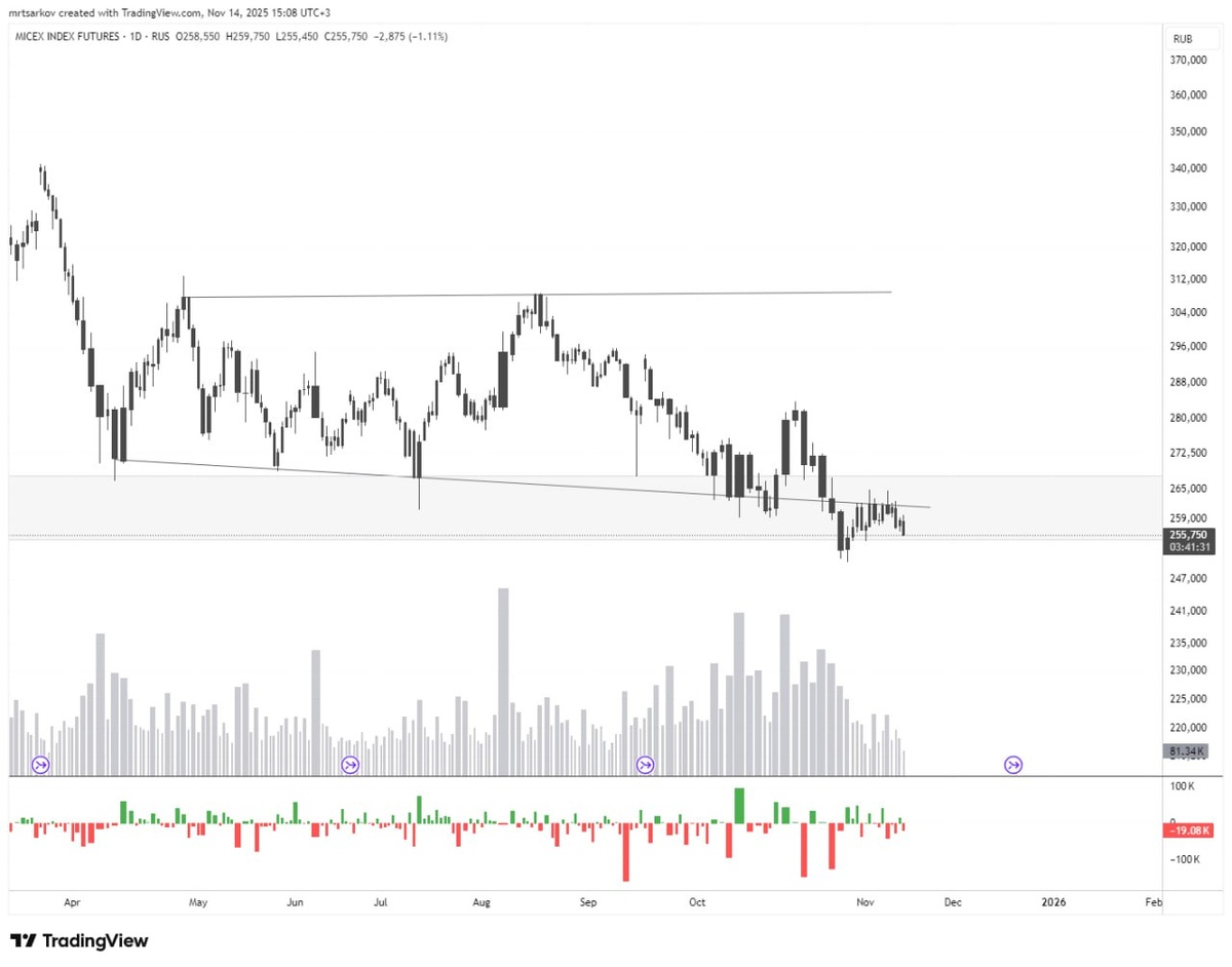 #аналитика 🇷🇺 Смотрю на Техническую картину индекса Мосбиржи, и понимаю что нас ждёт ещё один заход на обновление минимума. Структура объёма и движения цены говорит именно об этом. Всё больше и больше начинаю понимать, что рановато вошёл в рисковые активы. Хотел уделить больше времени операционке, а в итоге ещё и просадку словил на пару месяцев 😅 "Трейдинг такой трейдинг"