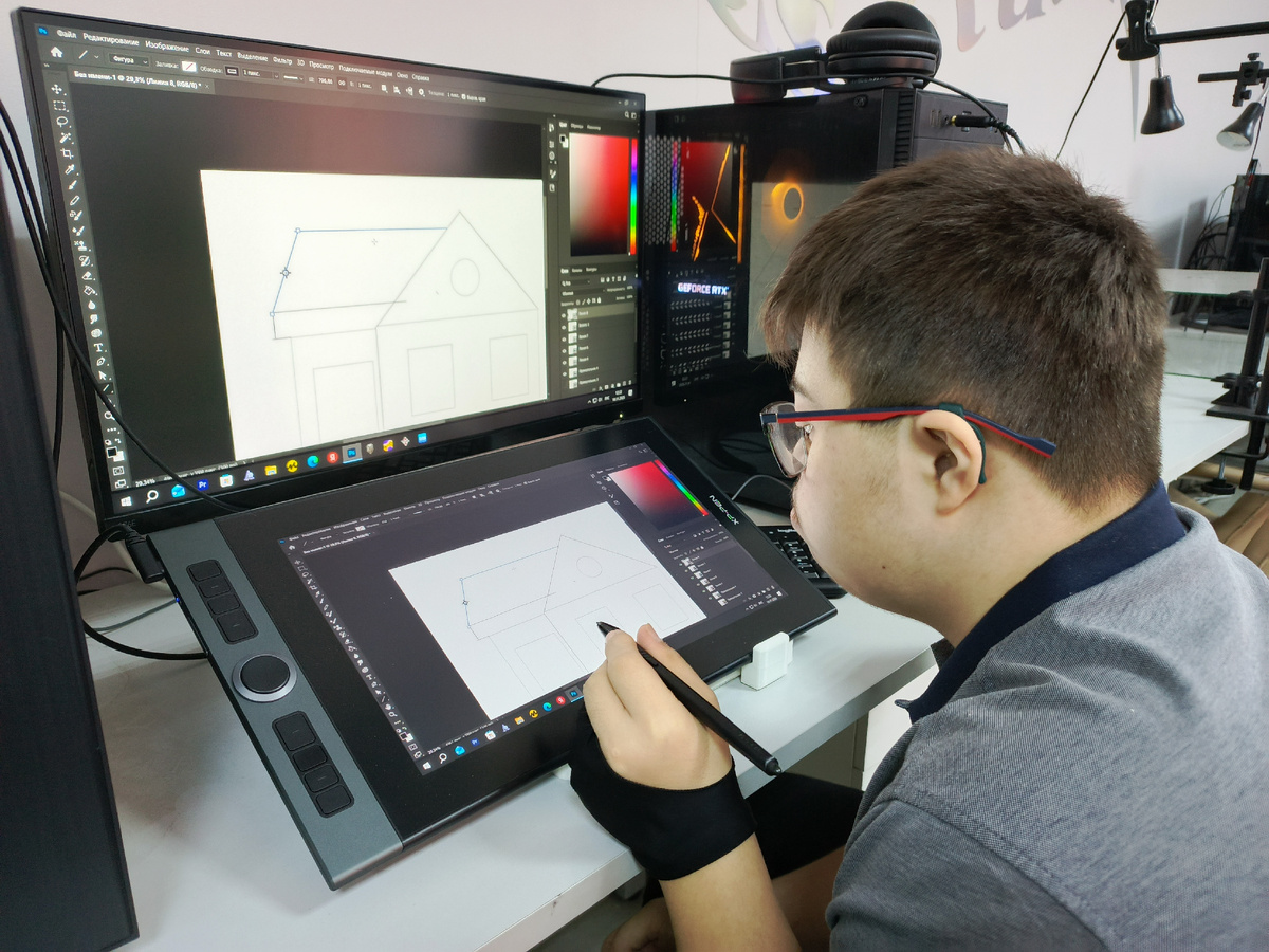 Захожу сегодня в статистику, а там целых семь рублей появилось. Бешенные бабки!!! Но раз что-то появилось, значит с мертвой точки ДЗЕН сдвинулся. Это радует. Значит мы с вами продолжаем общаться в дружной теплой компании, а деньги - дело наживное, в другом месте заработаем. И так, сегодня пятница, день занятий в ШКИ. Нам с Савой повезло, папа отвез нас на занятия, а вот обедать планировалось в местном буфете, потом отдых на диванчике, и продолжение занятий в фотостудии. Но весь день пошел немного не по плану. На анимации объединили работу двух студий. По второму мультфильму мы уже начали подготовку сюжета, придумали образы героев, начали создавать фон и место действия. На прошлом занятии все рисовали дома для своих героев, а сегодня решили вспомнить прошлогоднее занятие и изобразить их в фотошопе. Дело в том, что наши домики мы будем потом вырезать и на фоне строить свой мульти-город. Удобство фотошопа в том, что нарисовав дом один раз, можно потом сколько угодно менять его цвет, разм