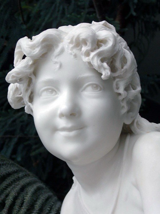 Представляете, это все из твердого камня, мрамора, вырезано, и кудряшки, и улыбка, и пухлые щечки, все, как живое, абсолютно! А на платьице еще и кружева… невозможно оторвать взгляд от неё…