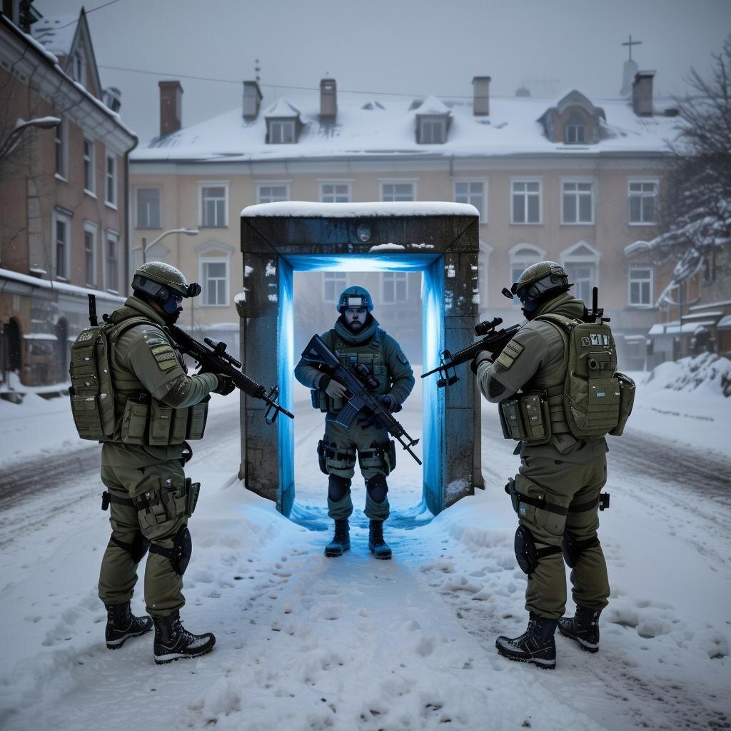 Алексей осмотрелся вокруг. Его команда собралась вместе, оружие было готово к бою. Но они столкнулись с проблемой: местные жители смотрели на них с удивлением и страхом. Современные костюмы и оружие выглядели странно и подозрительно.
