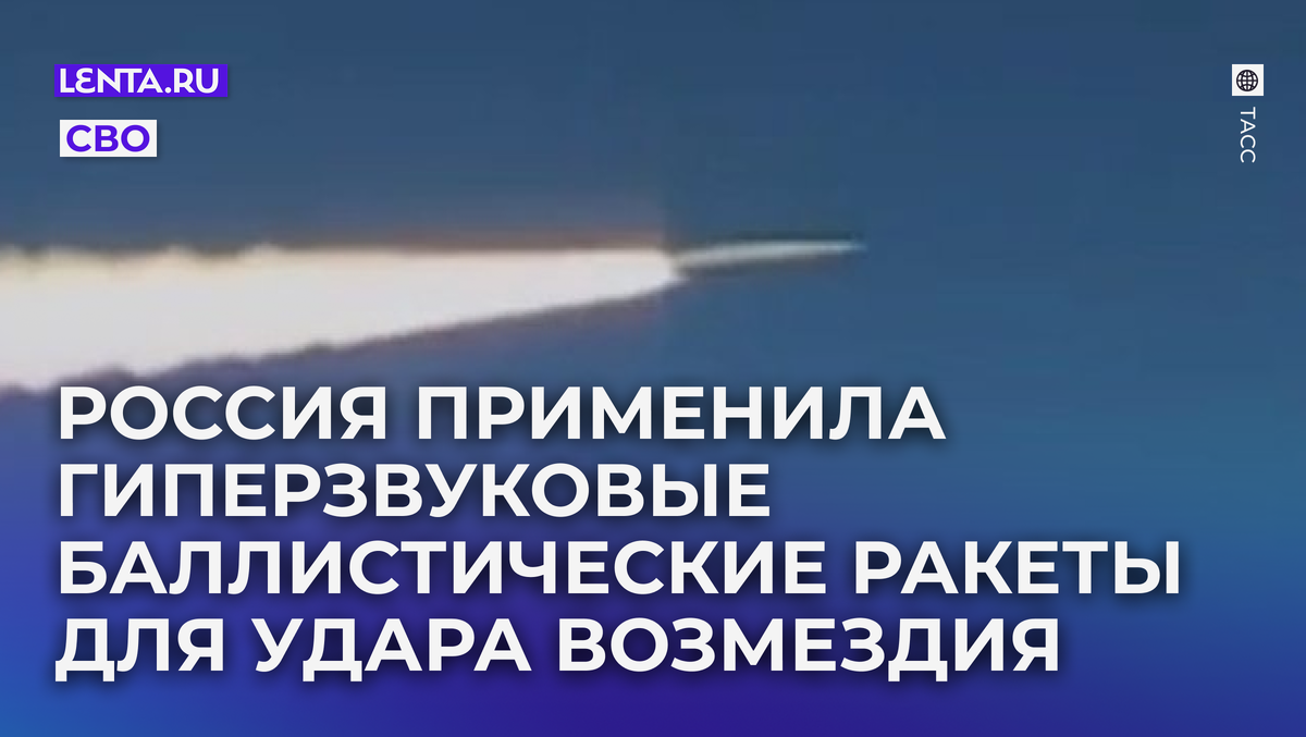 Вооруженные силы (ВС) России минувшей ночью нанесли удар возмездия по Украине. Для этого российские военные использовали в том числе баллистические гиперзвуковые ракеты «Кинжал», сообщило Министерство обороны РФ. Помимо «Кинжалов», армия России применила и другое высокоточное дальнобойное вооружение морского, воздушного и наземного базирования, а также беспилотные летательные аппараты (БПЛА), уточнили в ведомстве. Решение о нанесении удара возмездия по Украине было принято в ответ на террористические атаки Киева на российские гражданские объекты. В ответ на террористические атаки Украины по гражданским объектам на территории России сегодня ночью (...) нанесен массированный удар высокоточным оружием большой дальности воздушного, наземного и морского базирования, в том числе гиперзвуковыми аэробаллистическими ракетами «Кинжал», а также ударными беспилотными летательными аппаратами Минобороны России Целями удара стали объекты военно-промышленного комплекса (ВПК) и энергетики Украины, обес