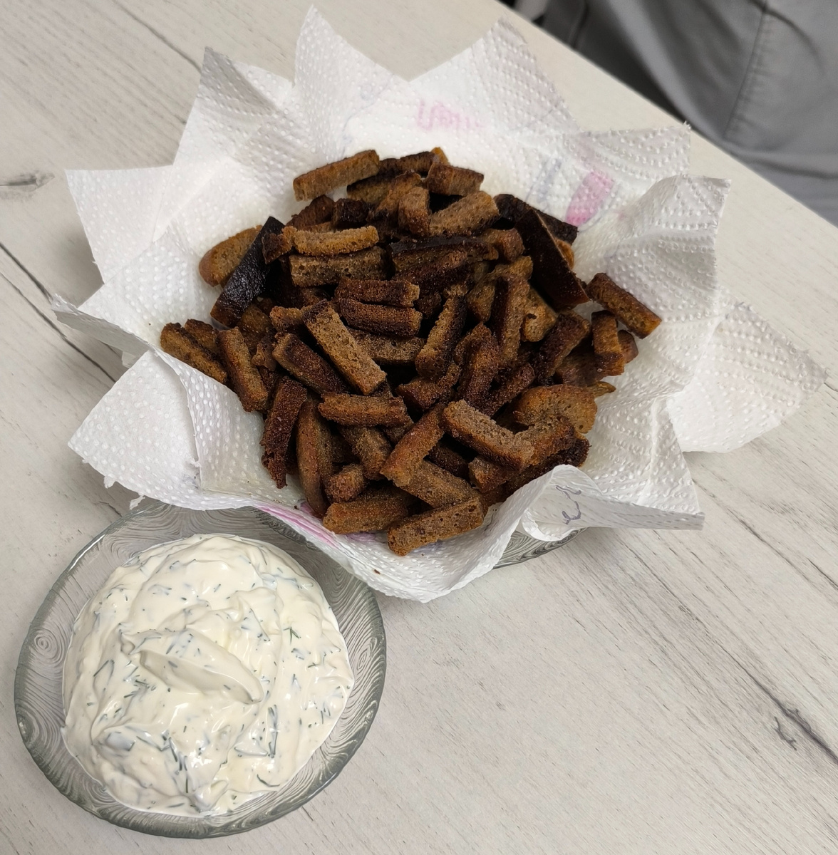 Пятница - день особый. Это не просто конец рабочей недели, это священный ритуал встречи любимого с работы. И пусть у вас в холодильнике только пара яиц, засохший лаваш и надежда на чудо - сегодня я спасу ваш пятничный вечер! Готовы к кулинарной магии? Поехали! 1. "Я всё успела!" - гренки с чесночным соусом "Пятничный сюрприз" Ингредиенты: Для гренок: хлеб "Дарницкий" половинка масло растительное 2 столовые ложки соль по вкусу Для соуса: сметана 200 грамм майонез 100 грамм чеснок 2 зубчика укроп свежий 30 грамм соль, перец чёрный молотый по вкусу. Готовим гренки. Хлеб нарезаем брусочками или кубиками. На сковороде разогреваем масло. Обжариваем хлеб в масле до золотистой корочки (по 2-3 минуты с каждой стороны). Горячие гренки слегка посыпаем солью. Делаем соус. Чеснок пропускаем через пресс. Смешиваем сметану, майонез, чеснок, мелко нарезанную зелень (или сухие травы), соль и перец. Даём соусу постоять 5 минут - вкусы лучше раскроются. Фишка: подавайте гренки в красивой миске, а с