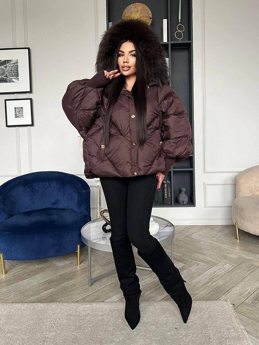⚜️Стильные куртки Schiaperelli мех на капюшоне натуральный наполнитель пух ,мех съёмный - Длина -70 см