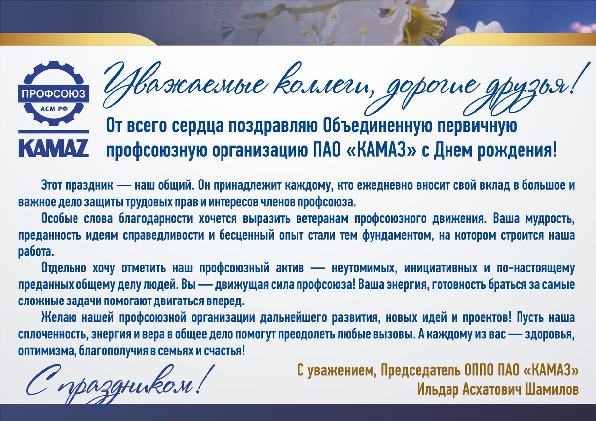С ДНЕМ РОЖДЕНИЯ, ПРОФСОЮЗНАЯ ОРГАНИЗАЦИЯ КАМАЗА!