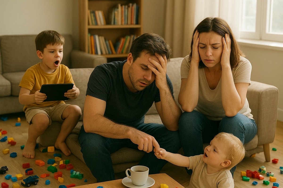 Это не только звуки. Это постоянные "Пап, смотри!", "Мам, он отнял!", "Я хочу пить!", "Поиграй со мной!". Это визуальный шум из разбросанных игрушек. Это ментальный шум от необходимости постоянно быть "включенным" — быть судьей, аниматором, поваром и службой безопасности одновременно.