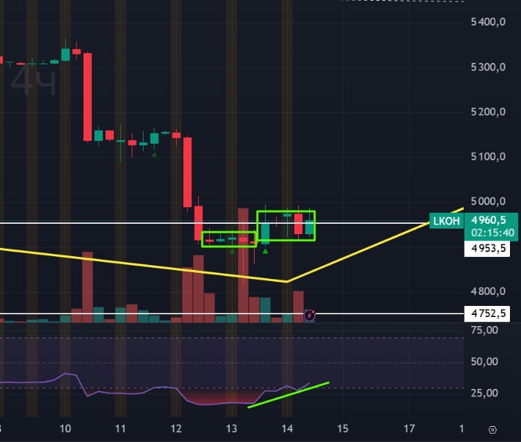 ⛽️ Лукойл 🏠 США могут продлить отсрочку санкций в отношении ЛУКОЙЛа в Болгарии 🏠 Британия выдала лицензию, позволяющую продолжать деловые операции с компаниями Лукойл Болгария до 14 февраля 🟢 Итак, Болгария намеревалась национализировать Лукойл, т.к. нет покупателя на зарубежные активы Лукойл. И Британия уже сняла санкции в этой стране, США на подходе. Это означает, что США не хотят допускать ситуации, когда бизнес просто отнимают. При этом две компании из США вызвались купить активы ЛУкойла. Очень удобно - сначала ввели санкции, чтобы активы потеряли в цене и сами же выступают потенциальными покупателями. Шикарный схематоз! 🟢 Технически Лукойл стоит в боковом накоплении на поддержке 4960. 🚗 Жду выход вверх из накопления, т.к. последние серьезные падения были по большей части на эмоциях, например, на статье FT. #Лукойл #LKOH #bogdanoffinvest