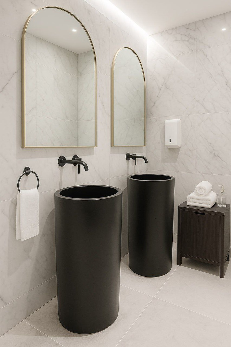 ❤️🔥Когда керамика подвела — стеклофибробетон выручил. Иногда заказы приходят не из спокойствия, а из легкой паники. Так случилось и тут: оформляют санузел в московском ресторане, заказывают напольные раковины… а по факту приезжают керамические не того размера. Вообще не того. В итоге — срочный запрос: “Нужно сделать две компактные тубы. Красивые. Чёрные. И быстро. Возьмётесь?” Мы такие: “Конечно, берёмся”. Что было дальше: — запустили форму в работу без лишних созвонов и бюрократии. — вылили обе тубы из СФБ — аккуратные, матовые, строгие. — проверили геометрию, кромку и ровность чаши. — и вот они уже стоят, сохнут и готовятся к упаковке.📂 По пути снимаем видео, чтобы заказчик видел каждый шаг — не просто “ваш заказ готов”, а будто стоит рядом с нами в цеху. Кстати, параллельно мы сейчас льём все 36 раковин (левые и правые) из большого проекта, который вы видели вот тут 👉 https://dzen.ru/media/mkbeton/nu-chto-j-novyi-zakaz-i-on-moscnyi-68e7b1aef776b252cfd7b268. Работа кипит так