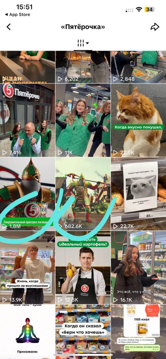 ТикиТоки Пятёркослава в официальном паблике Пятёрочки тоже так неплохо залетают