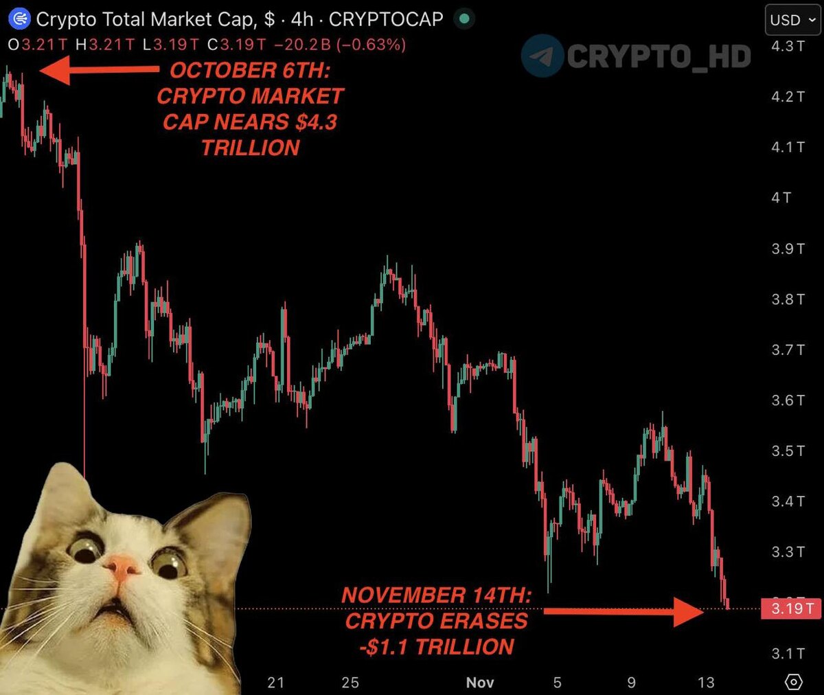 π³ Π‘ 6 ΠΎΠΊΡΡΠ±ΡΡ ΠΊΡΠΈΠΏΡΠΎΡΡΠ½ΠΎΠΊ ΠΏΠΎΡΠ΅ΡΡΠ» $1,100,000,000,000 ΡΡΠ½ΠΎΡΠ½ΠΎΠΉ ΠΊΠ°ΠΏΠΈΡΠ°Π»ΠΈΠ·Π°ΡΠΈΠΈ. Crypto Headlines