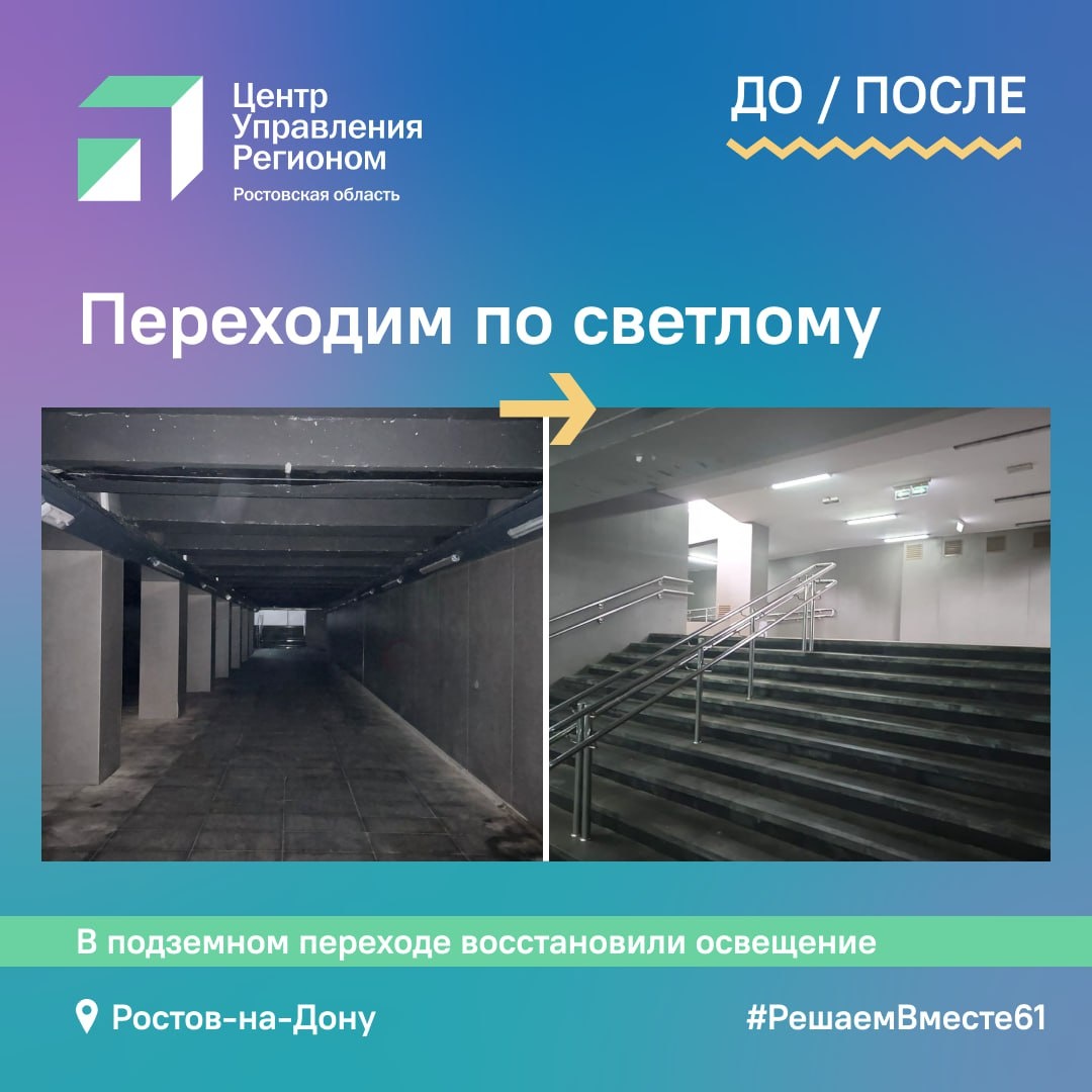 ❓Какие проблемы волновали жителей Дона? Расскажем в нашей подборке решенных вопросов! 💡Ростовчане в социальных сетях сообщили о неработающем освещении в подземном переходе на левом берегу Дона возле стадиона "Ростов Арена". Проблему решили - теперь здесь снова светло. 🌱Новочеркасцы обратились с просьбой убрать упавшую на провода ветку на проспекте Баклановском. Опасность устранили - больше проблемы нет. 🚦В Морозовске на улице Ленина на пешеходном переходе возле администрации района не работал зеленый цвет светофора, о чем сообщила жительница. Вопрос взяли в работу и решили - светофор снова работает корректно. #цур61 #решаемвместе61 #кейсы61 #Ростовскаяобласть