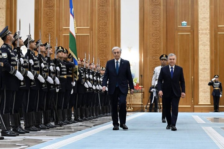 Отмечается, что президенты Касым-Жомарт Токаев и Шавкат Мирзиёев обошли строй почётного караула и поприветствовали членов официальных делегаций Узбекистана и Казахстана. В состав делегаций входят руководители профильных министерств и ведомств, от