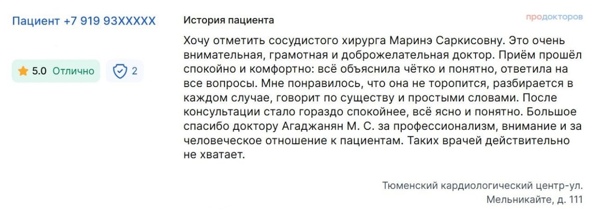 Видеть ваши результаты, уважаемые пациенты, и читать ваши отзывы — лучшая мотивация для меня. Спасибо, что доверяете мне свое здоровье и делитесь своими историями. С уважением, врач-флеболог Агаджанян Маринэ Саркисовна Тюмень
