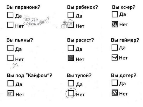 Очень часто, предлагая пройти тот или иной тест или опрос, нас просят выразить своё отношение к каждому конкретному вопросу в формате ДА - НЕТ. Правда, ответы бывают далеко не всегда адекватными.