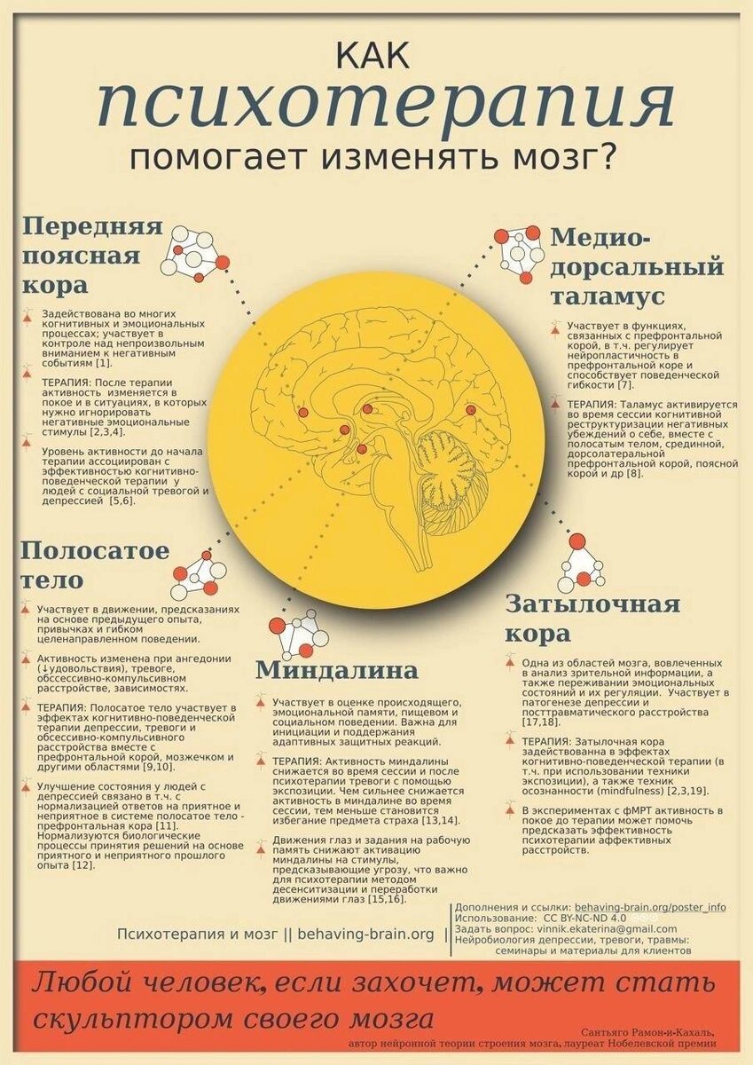 Многие недоумевают и не понимают зачем нужна психотерапия. В чем смысл. Вот наглядно, что происходит с мозгом человека, занимающимся терапией.