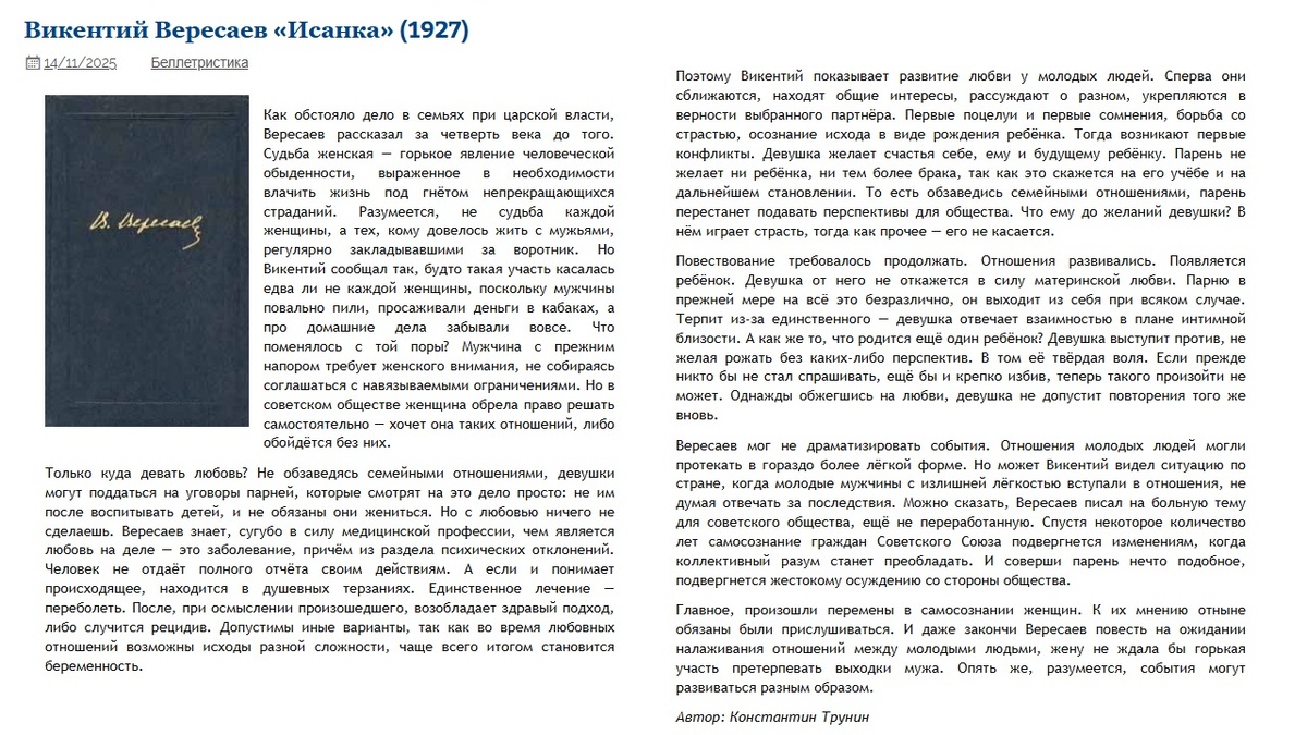 Викентий Вересаев «Исанка» Критика