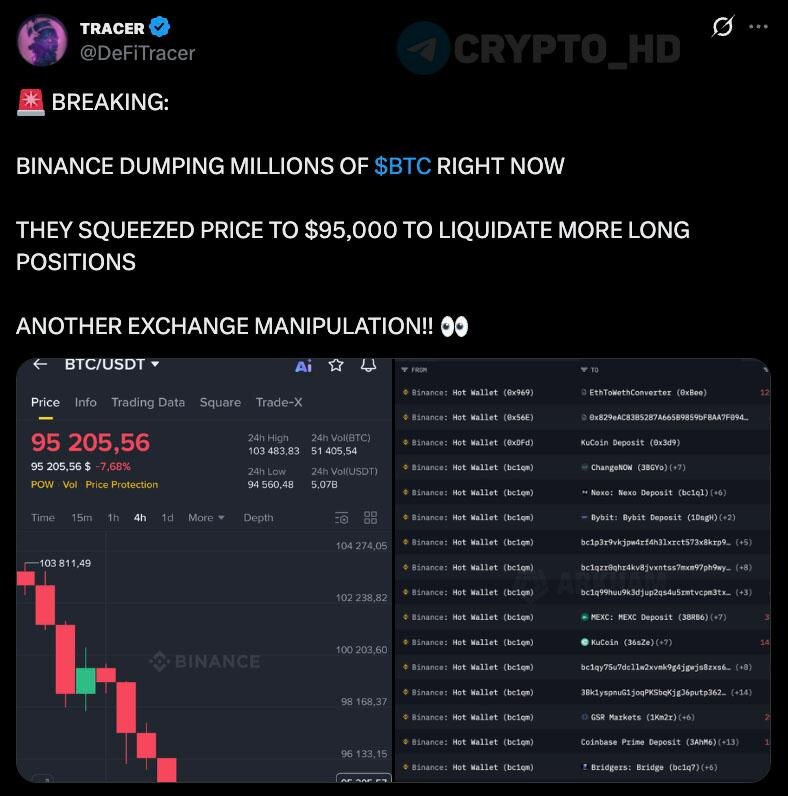 #слухи 🤡 Binance бреет лонгистов – в сети снова распространяют FUD о том, что биржа манипулирует рынком и продает BTC на сотни миллионов $$$. P.S. Подобные твиты появляются со стабильной регулярностью (лишь малая часть примеров): - 17.10 - 6.10 - 14.04 - 4.04 Crypto Headlines