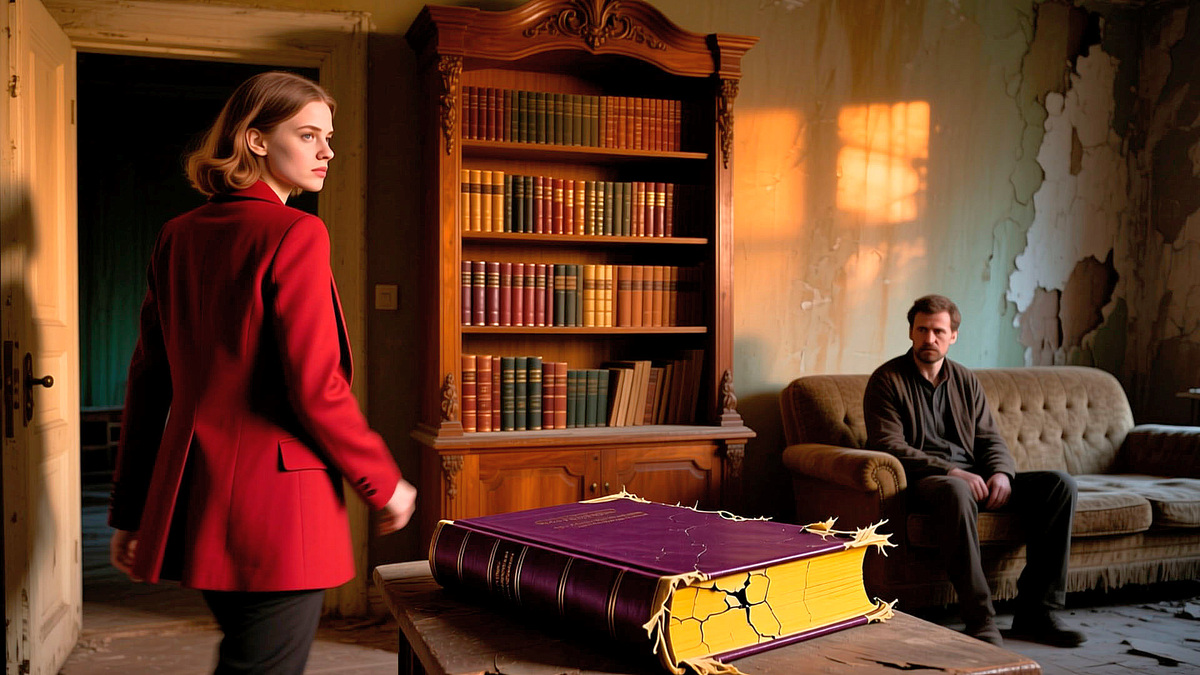 Он остался один. В тишине. В идеально чистой, вымершей квартире. Его взгляд снова уперся в ту самую книгу, повернутую к нему своим позорным, гнилым боком. Она была как зеркало. Зеркало, в котором он увидел, наконец, правду. О книге. О браке. О себе.