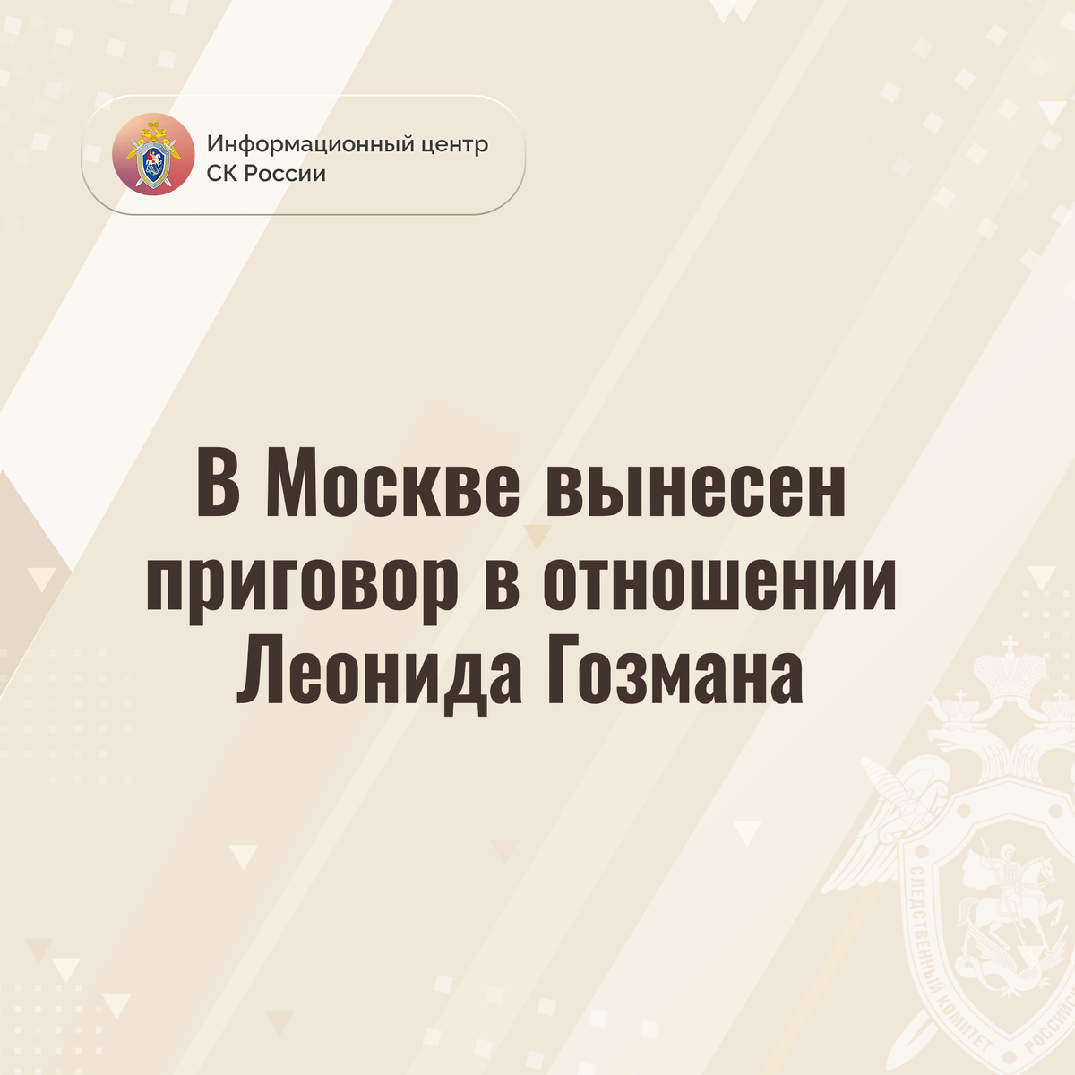 Собранные следственными органами ГСУ СК России по городу Москве доказательства признаны судом достаточными для вынесения приговора в отношении Леонида Гозмана* (включен Минюстом России в перечень иностранных агентов). Он признан виновным в совершении преступления, предусмотренного ч. 2 ст. 205.2 УК РФ (публичные призывы к осуществлению террористической деятельности, пропаганда терроризма, совершенные с использованием информационно-телекоммуникационной сети "Интернет").