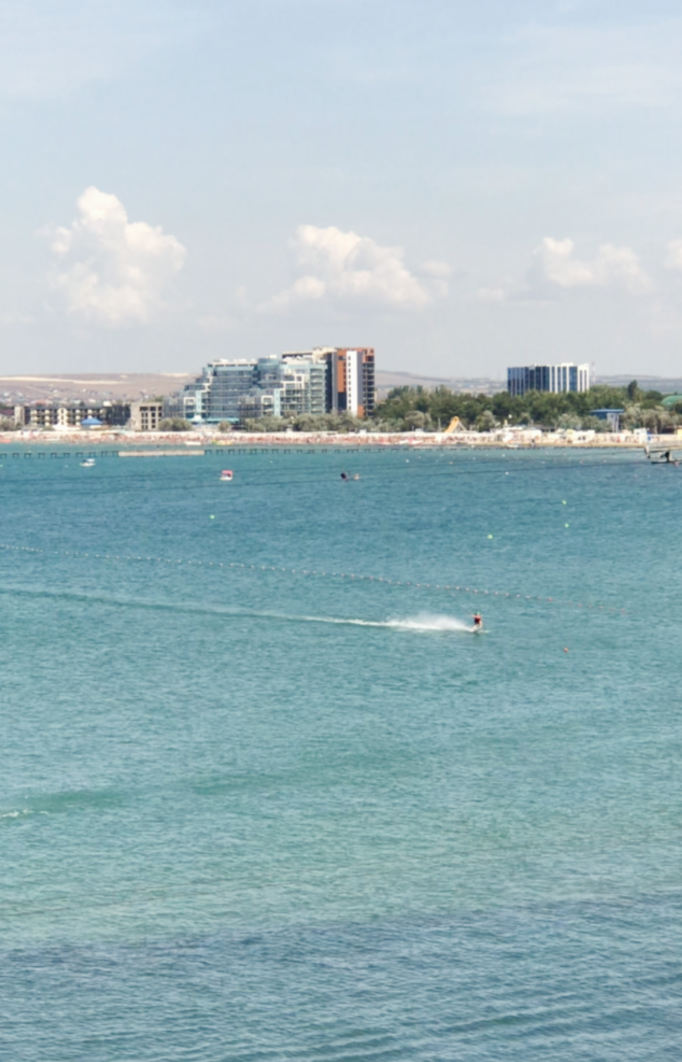 Лермонтово, как место отдыха не на слуху, но нам понравилось это местечко. Отель был первой линии, со своим пляжем. Здесь золотистый песок, как в Анапе, и местами достаточно большая мель, так что идеальное и безопасное место для плавания детей. От души позагорали и накупались во второй половине этого дня.