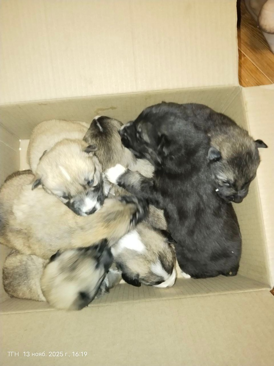 ‼️ Дети принесли щенков, нашли в коробке на улице, на вид около месяца, 7 штук , 6 мальчиков и 1 девочка, подскажите пожалуйста куда их можно отдать себе оставить не можем, маленькие дети.