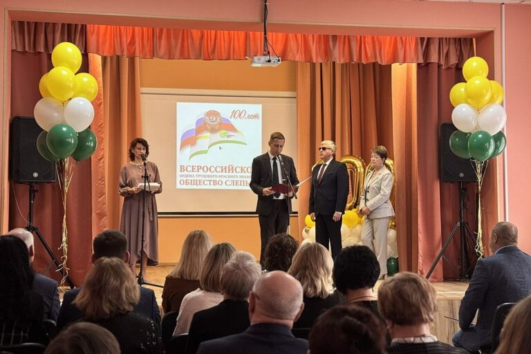 В Калининграде состоялось торжественное собрание, посвящённое столетию со дня образования Всероссийского ордена Трудового Красного Знамени общества слепых. На мероприятии подвели итоги работы организации и наградили её активных участников грамотами и благодарственными письмами за вклад в развитие системы поддержки людей с инвалидностью. От имени заместителя председателя правительства Калининградской области Анжелики Майстер поздравление участникам передал заместитель министра социальной политики региона Алексей Фещак. В своём обращении он подчеркнул, что Калининградская организация ВОС является надёжным партнёром областного правительства в вопросах развития комплексной реабилитации и абилитации граждан с инвалидностью. По его словам, деятельность общества способствует повышению качества жизни незрячих жителей, помогает их профессиональной адаптации и обучению, а также поддерживает реализацию государственных программ социальной помощи. Фещак отметил, что за годы работы региональное отде
