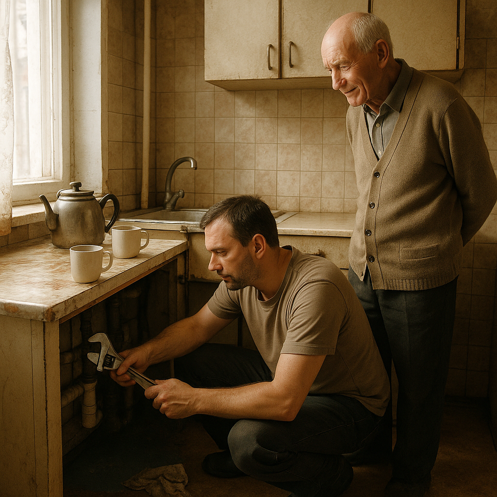 — Простите, что беспокою, — сказал старик. — У меня кран на кухне сломался. Течёт. Я пытался сам, но не получается. Может, вы… — Он замялся. — Может, посмотрите? Я заплачу.
