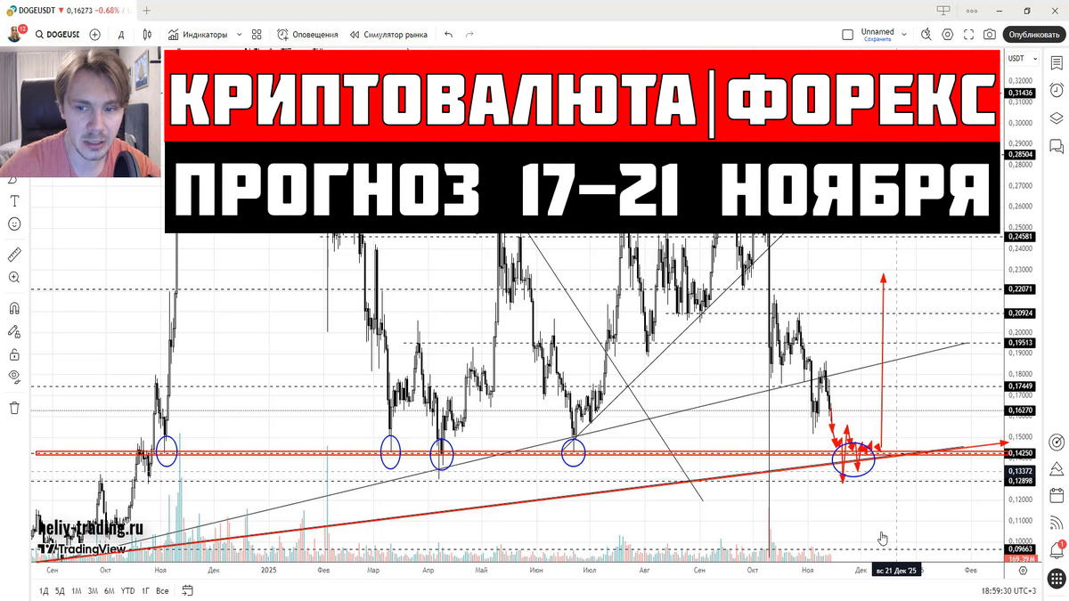 Прогноз Криптовалют и Форекс на 17 - 21 ноября 2025: EURUSD евро/доллар, GBPUSD фунт/доллар, USDCHF доллар/франк, USDJPY доллар/иена, Индекс доллара dxy, USDRUB доллар/рубль, CNYRUB юань, Криптовалюта, Биткоин btc, Эфириум eth, Ripple xrp, Binance coin bnb, Solana sol, Dogecoin doge, Litecoin ltc, Toncoin ton, Pepe, Индекс криптовалют total3, Золото xauusd, Серебро xagusd, Нефть brent, Природный газ, Фондовые индексы, S&P 500, Nasdaq, ММВБ, РТС, Инвестиции, Трейдинг. EUR/USD – евро доллар продолжает разворачиваться вверх от нижней грани восходящего канала, пробив крепкий уровень сопротивления 1.1585