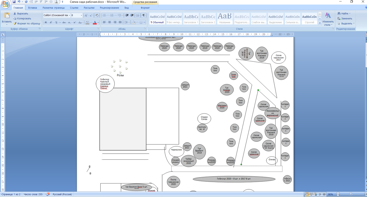 Сад — живой организм, ему всё равно, что ты там нарисовал. Что-то уходит, что-то приходит, что-то меняется местами, а что-то вдруг так разрастается, что занимает на плане уже не точку, а приличную окружность, поглощая соседей. Постоянно перерисовывать точки и кружочки, менять названия растений на такой схеме утомительно.