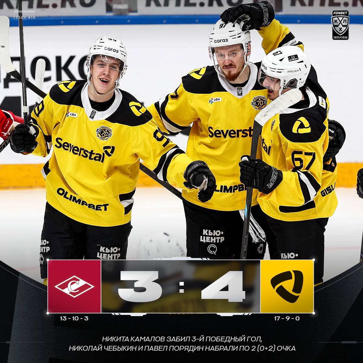 🟡 «Северсталь» обыгрывает «Спартак» во второй раз в сезоне!