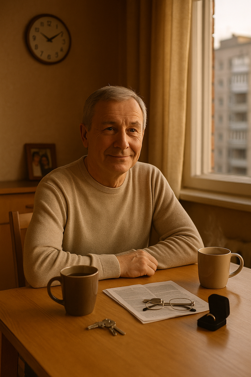 Меня зовут Николай, мне 62 года. Вдовец. Работаю водителем на служебной "ГАЗели", подрабатываю иногда на даче у соседей - то сарай подлатать, то электрику поменять. Живу в трёшке, панельный дом, девятиэтажка, район самый обычный: "Пятёрочка" во дворе, детская площадка, те же бабушки, что сидят на лавочке уже лет двадцать.