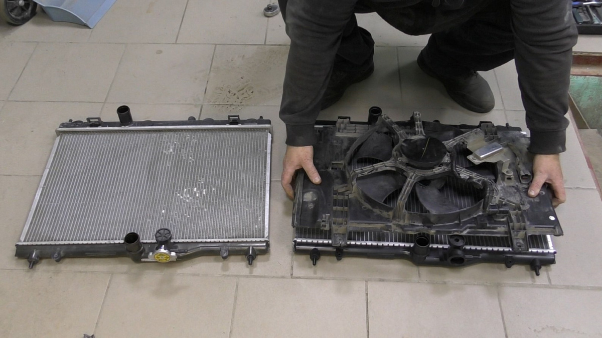 Демонтировали…Переставляем кожух с вентилятором на новый радиатор.