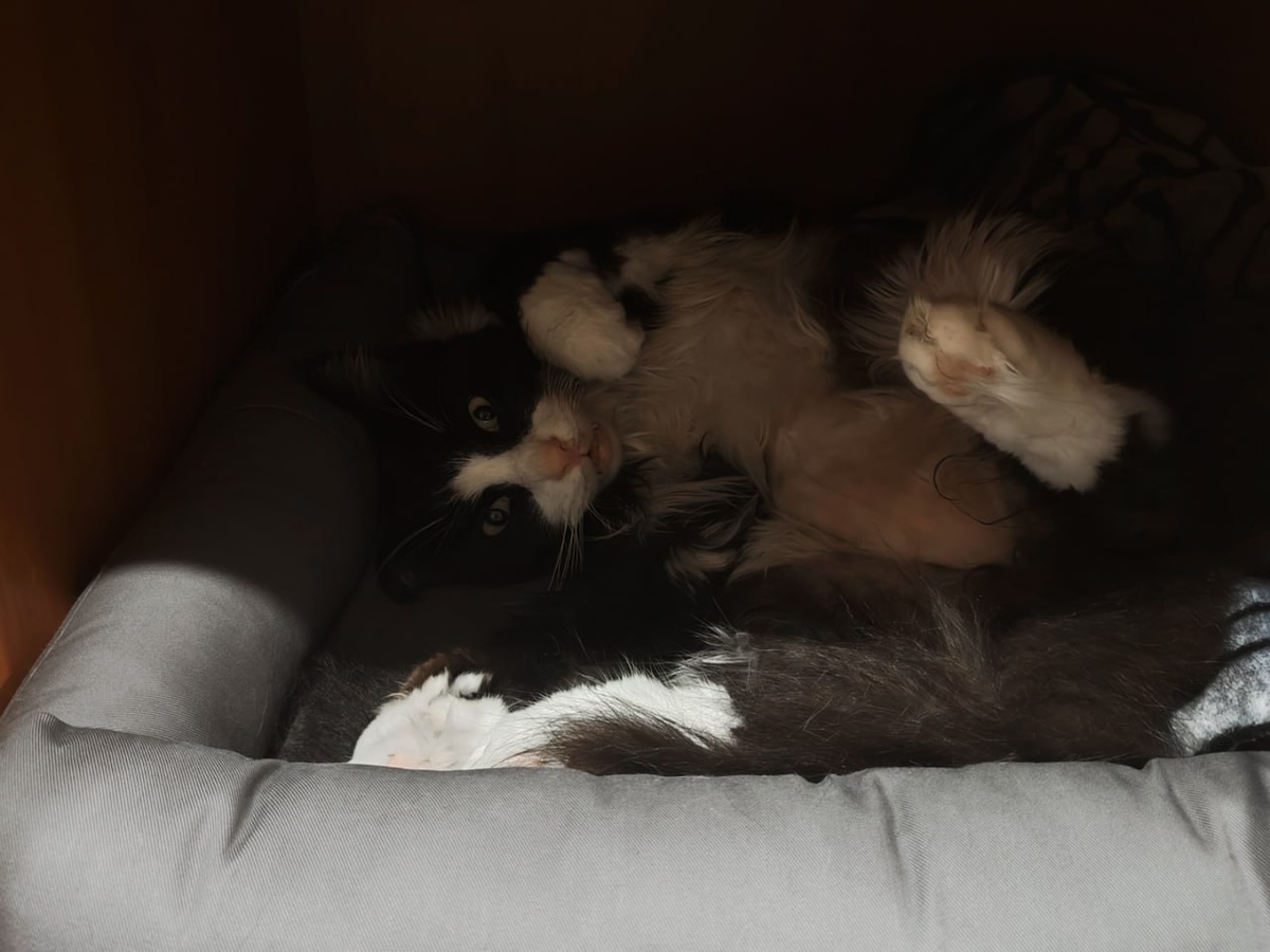 Выделили и обустроили Томасу его личную полочку в шкафу. Купили ему лежанку с подогревом. Подогрев не зашёл. Попробовали поэкспериментировать с другими котофеями — те тоже не впечатлились её теплотой 🤷♀️ Ну да ладно, значит без подогрева. Главное, что сам форм-фактор зашёл. Половину дня Том теперь проводит вот так 😄 Сдача анализов по плану — завтра вечером. Ничего особо хорошего ждать не приходится, уже не та ситуация… но делаем всё, что можем, и главное — живём.. В общем, напишу ещё, как что там придёт. Доброй ночи этому чату 🤗 #том