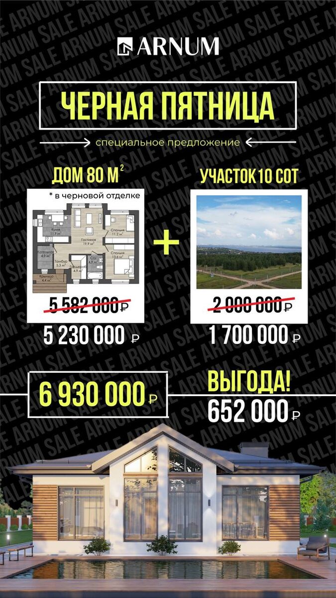Горячие цены только в ЧЕРНУЮ ПЯТНИЦУ 🖤🔥 Наш топ-10 проектов + земельный участок 10 соток по самым выгодным ценам ⚫️AR-80 = ВЫГОДА 652 000 ⚫️AR-85 = ВЫГОДА 700 000 ⚫️AR-100 = ВЫГОДА 800 000 ⚫️AR-108 = ВЫГОДА 887 000 ⚫️AR-111 = ВЫГОДА 890 000 ⚫️AR-118 = ВЫГОДА 900 000 ⚫️AR-119 = ВЫГОДА 905 000 ⚫️AR-134 = ВЫГОДА 955 000 ⚫️AR-137 = ВЫГОДА 968 000 ⚫️AR-146 = ВЫГОДА 980 000 Пишите номер проекта, чтобы узнать подробности ⬇️
