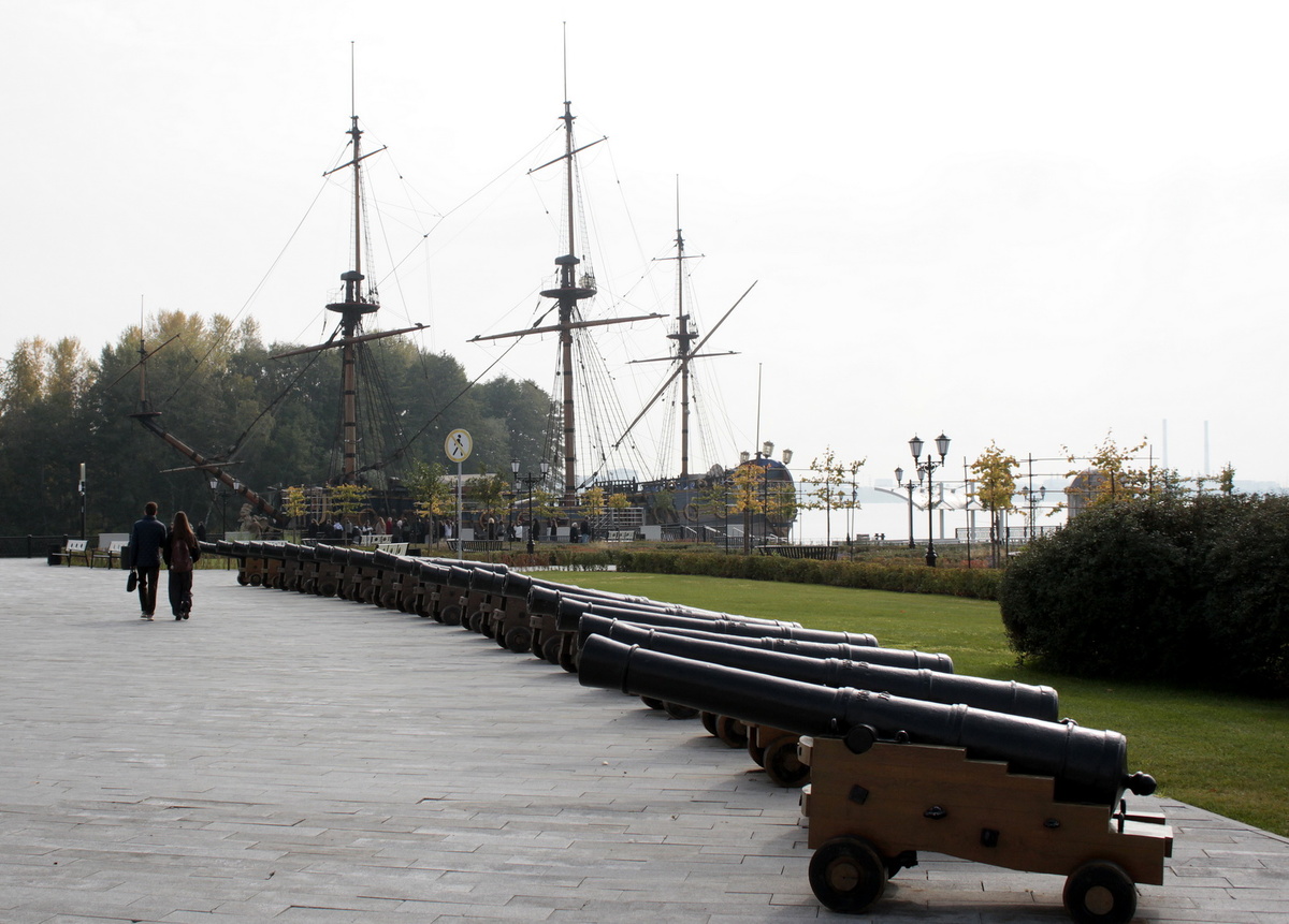 Пушек в музее тоже, естественно, не 58, а гораздо меньше, иначе бы не разместить другие экспонаты. Орудия, которым не хватило места на судне, установлены на Адмиралтейской площади.